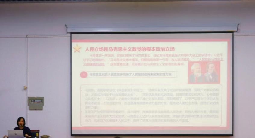 翟天嵩老师以“从百年党史看中国共产党的人民立场”为题,围绕“人民立场是马克思主义政党的根本政治立场”“紧紧依靠人民,是中国共产党不断从胜利走向胜利的力量源泉”“一切为了人民,是中国共产党百年不懈奋斗的目标”三个方面为同学们进行了讲解。