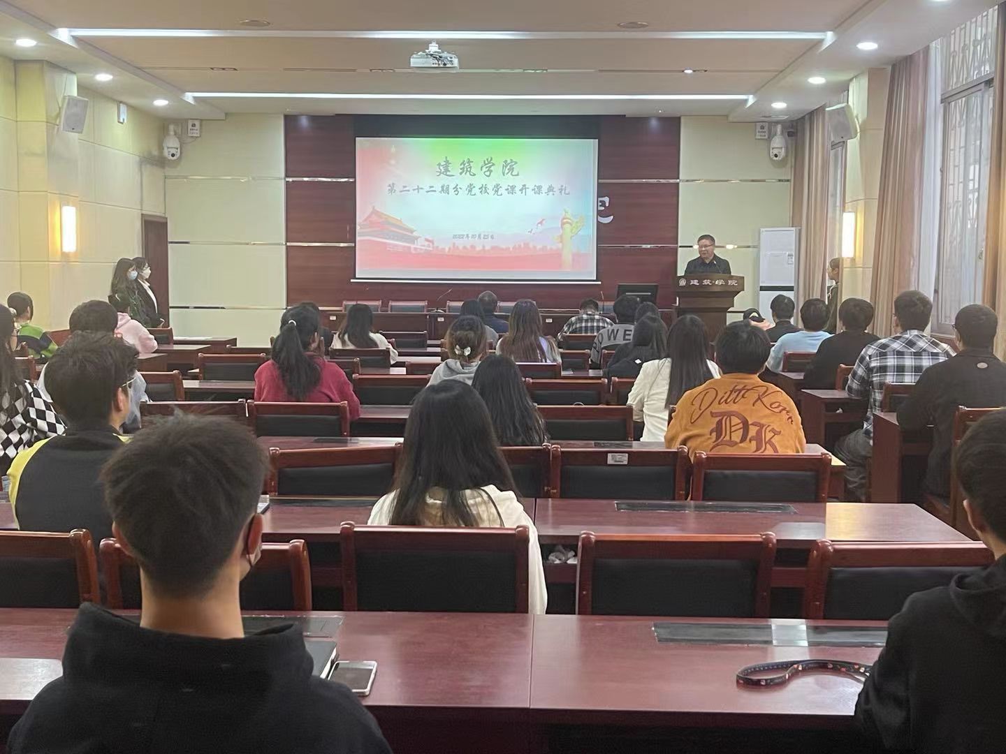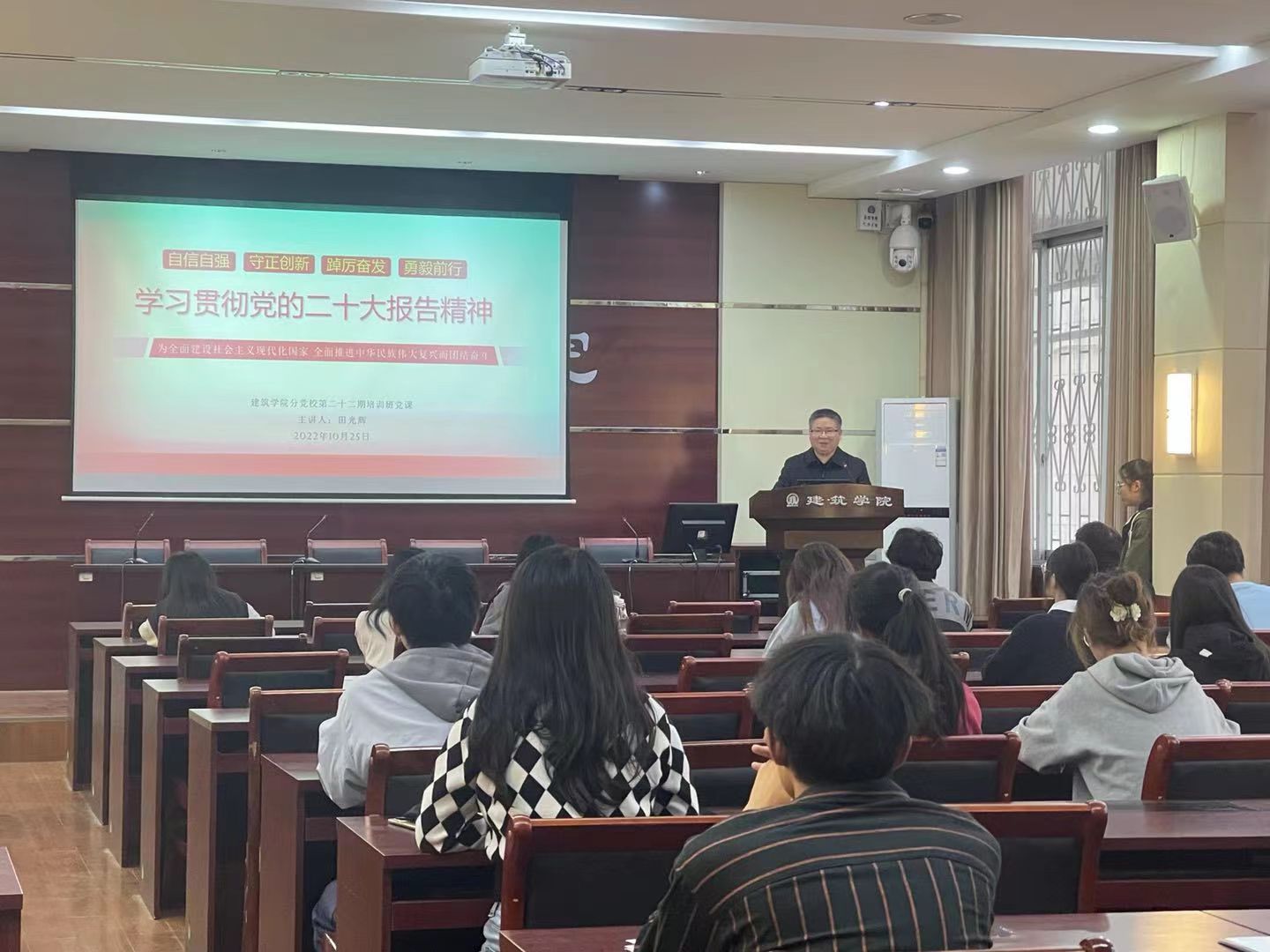 必赢76net线路于10月25日下午15时30分在七教106多功能报告厅举办第二十二期入党积极分子培训班开课典礼暨党课培训第一讲。党委书记田光辉、党委副书记张辉、组织委员杨菲、第三学生党支部书记李明东及本期入党积极分子参加。