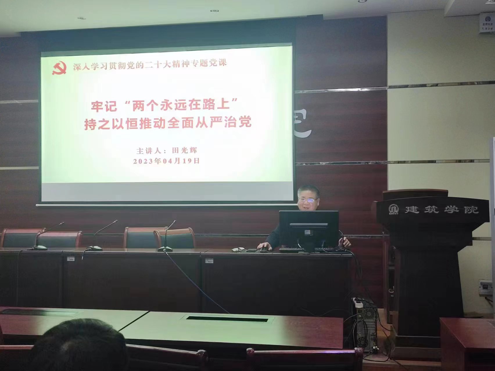本网讯 为深入学习贯彻党的二十大精神,引导学生党员深刻领会、全面把握党的二十大精神的重要意义,切实用党的理论武装头脑、指导实践。4月19日,必赢76net线路在7106多功能报告厅组织开展“深入学习贯彻党的二十大精神——牢记‘两个永远在路上’ 持之以恒推动全面从严治党”专题党课,全体学生党员参加。学院党委书记田光辉担任主讲人。