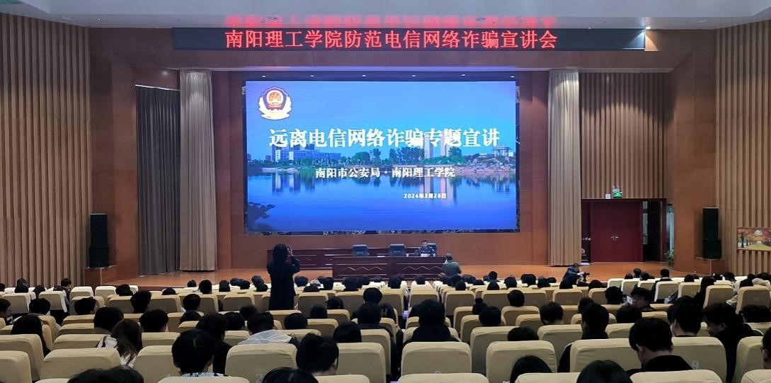 本网讯(学生记者/袁国浩)为进一步加强学院师生防范电信网络诈骗的意识,增强辨别能力,有效遏制电信网络诈骗案件的发生,3月26日下午,我校于第三报告厅开展“提升自我防范能力·构筑校园安全防线”反诈主题宣讲会。南阳市公安局反诈中心白松岩警官现身说法,为我校师生带来一场生动的反诈盛宴。