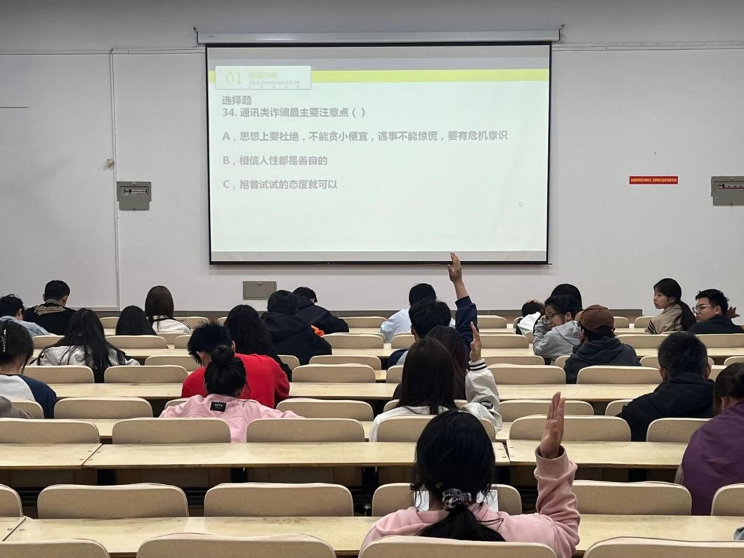 本网讯(学生记者/张振杰)为切实增强我院学生的安全意识,提高防诈骗能力,3月30日,我院于7教101报告厅举办“反诈骗安全知识竞赛”。