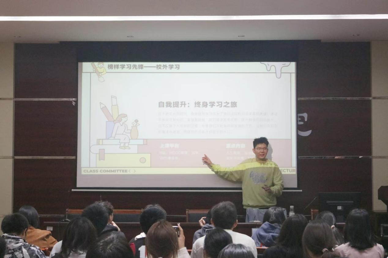培训会上,袁邦正同学从“加强引领思想风尚”“勤勉务实肯担当”“榜样学习争先锋”“和谐生活靠大家”四个方面为新生班委们做培训。他结合自己的学习和工作经验,通过分享自己在班级管理和活动策划中的成功案例,深入浅出地讲解了班委的职责与定位,为新生班委们提供了宝贵的经验和思路。