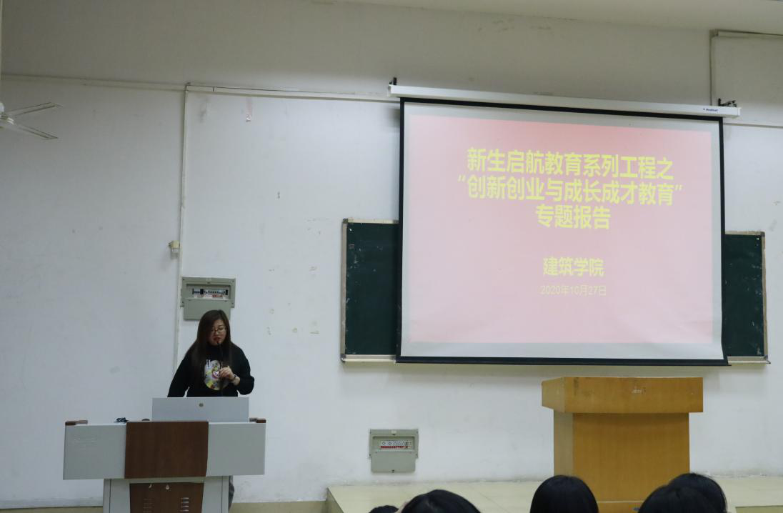 (供稿人 郭文婧)为更好地引导和培养我院学生的创新实践能力,强化创业意识,促进我院学生综合素质的全面发展,10月27日晚,必赢76net线路在7教101阶梯教室开展新生起航教育系列工程之“创新创业与成长教育”专题报告。本次报告由创新创业就业指导中心主任牛烨老师主持,全体20级建筑学子参加本次活动。